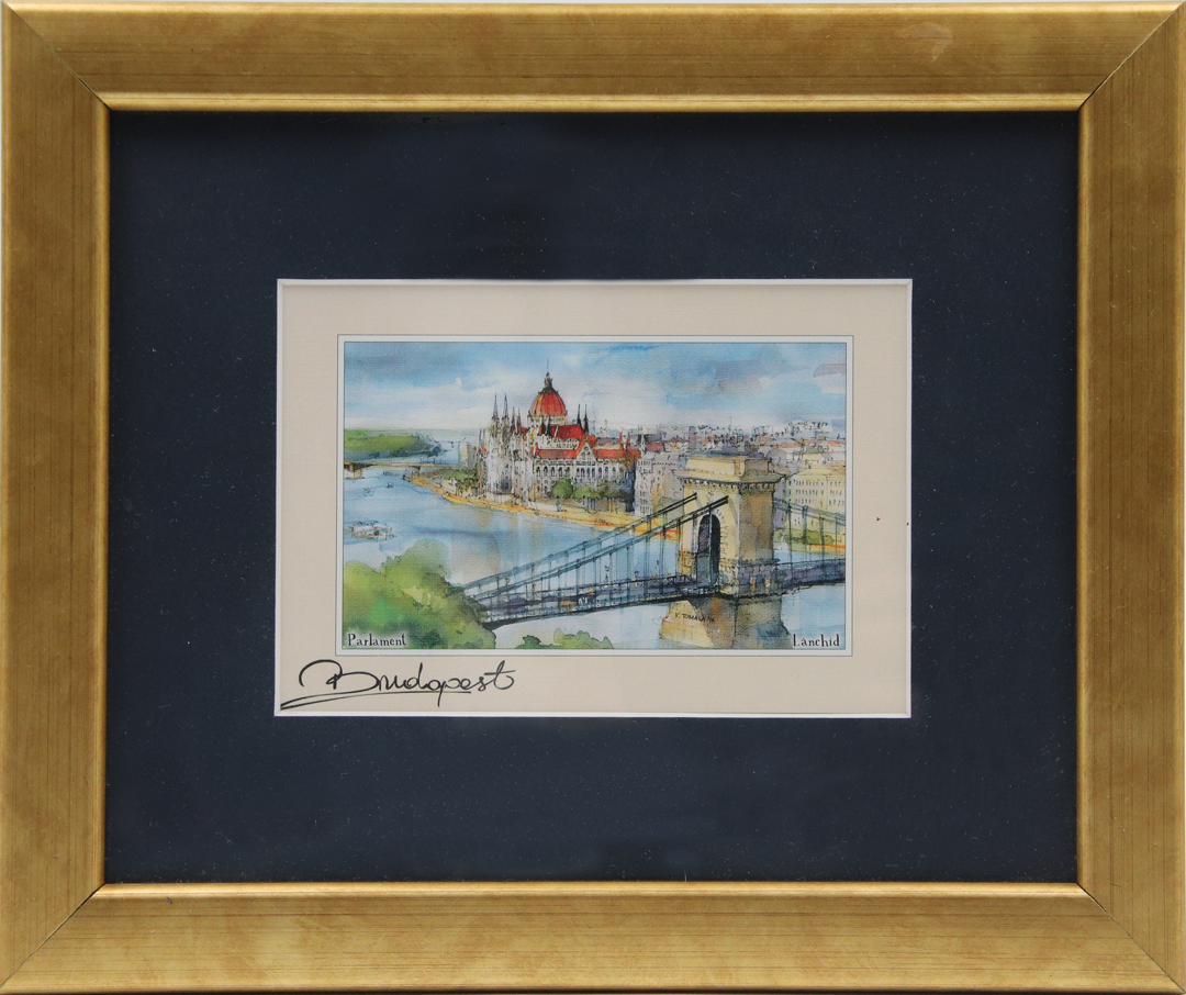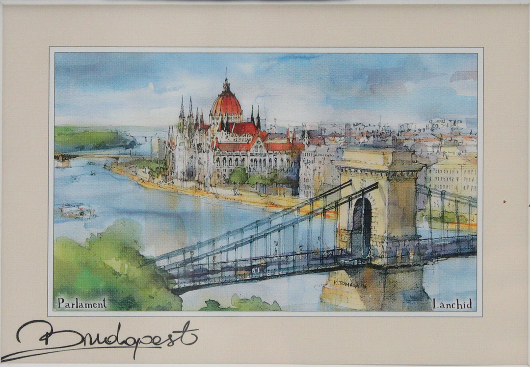 Umirujuća panorama Budimpešte, izrađena tehnikom tuša i akvarela, delo je nepoznatog mađarskog umetnika iz 2014. godine. Originalna ilustracija dimenzija 10 x 14,5 cm, postavljena je u paspartuu dimenzija 22 x 27 cm, što je čini spremnom za uramljivanje i izlaganje. Umetničko delo prikazuje romantičan i atmosferičan prikaz Budimpešte, u blagim i prozračnim tonovima, tipičnim za akvarel tehniku. Idealan komad za ljubitelje putovanja, urbanih pejzaža i savremenog umetničkog izraza, kao i za one koji traže dekoraciju sa pričom i dušom.