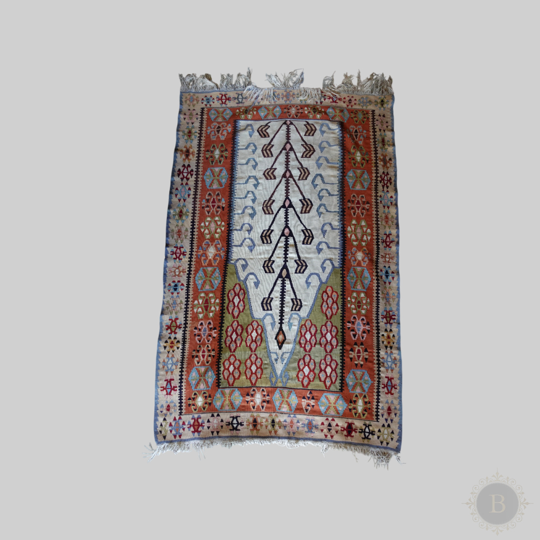 Ćilim dimenzija 100×151 cm predstavlja savršen spoj praktične upotrebe i tradicionalne estetike. Ručno tkan od prirodnih materijala, ovaj ćilim je bogato dekorisan etno motivima koji nose duboku simboliku zaštite, obilja i harmonije.