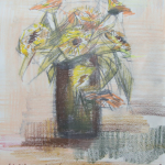 Njegov karakteristični stil figuralnog minimalizma i emotivne ekspresije dolazi do izražaja, dok pažljiva gradacija tonova i delikatna tekstura pastela daju slici toplu i harmoničnu atmosferu. Ovo delo odiše intimnom notom i suptilnom elegancijom, idealno za ljubitelje dekorativne umetnosti i cvetnih motiva.