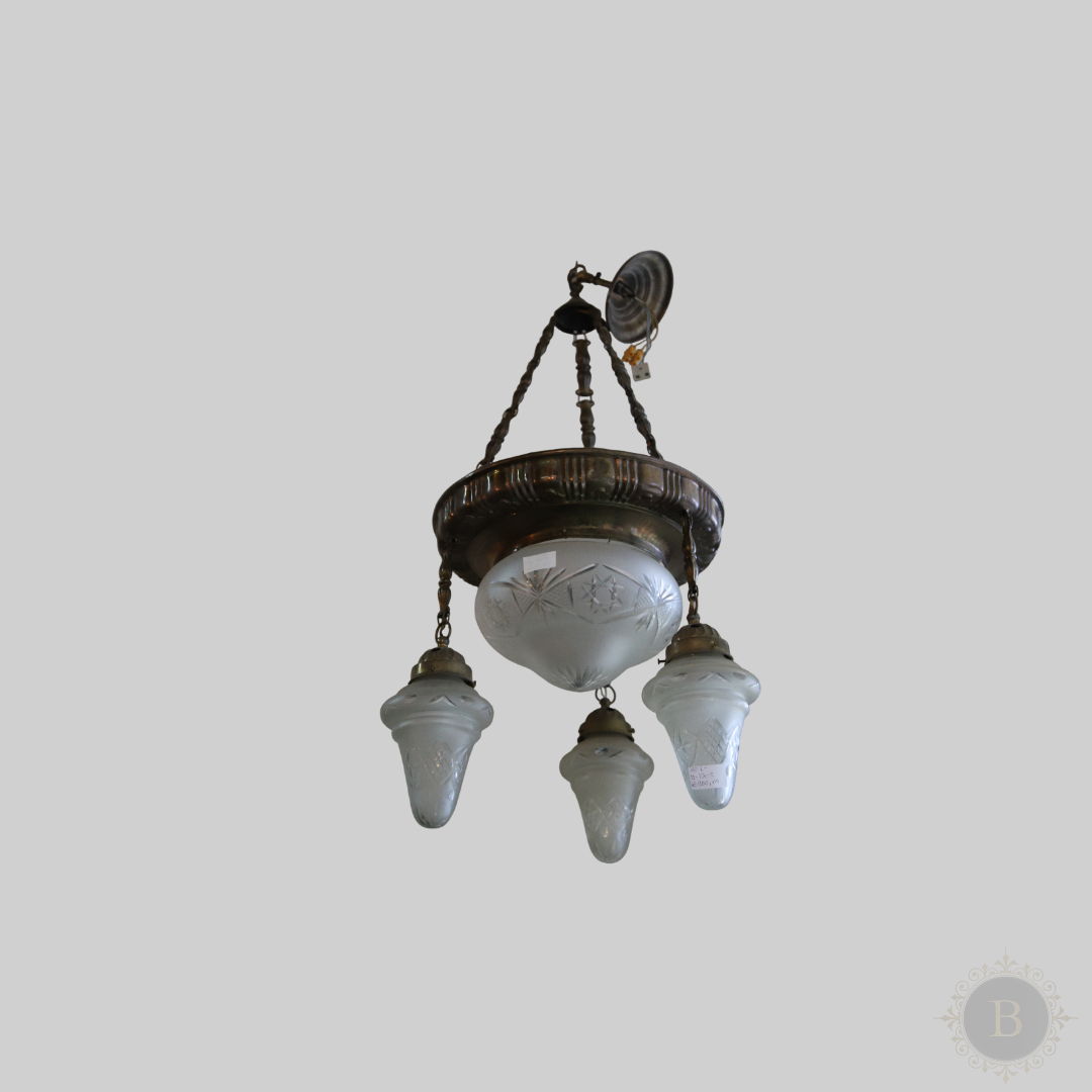 Luster sa manjim bakljama, izrađen od mesinga u periodu između 1920. i 1930. godine, autentičan je primer rane elektrifikacije enterijera i umetničkog zanatstva međuratne epohe. Ovaj raskošni luster ima više grana u obliku stilizovanih baklji, što ga čini ne samo funkcionalnim izvorom svetlosti, već i impresivnim dekorativnim akcentom.